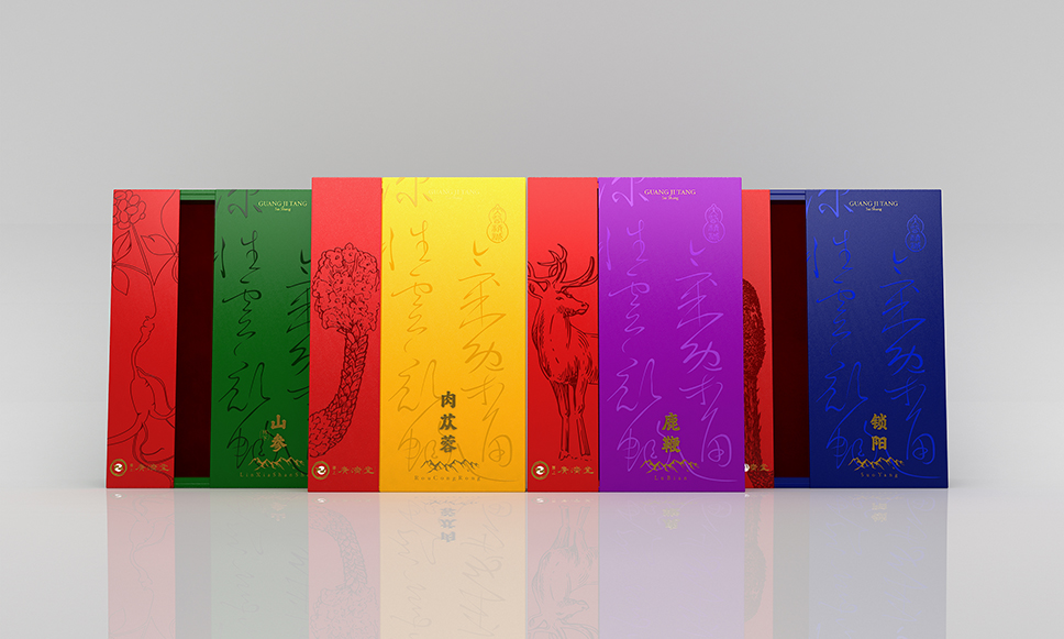 根據廣濟堂產品市場構成,在精制飲片罐裝品類端,分別針對“連鎖”“外阜”“電商”現有三大渠道進行渠道梳理和文化提煉和定位,在統一的位置商標文化元素的應用下作各系列的專屬創意設計,既保證品牌文化的傳承性和統一感又兼具渠道差異化的特色。